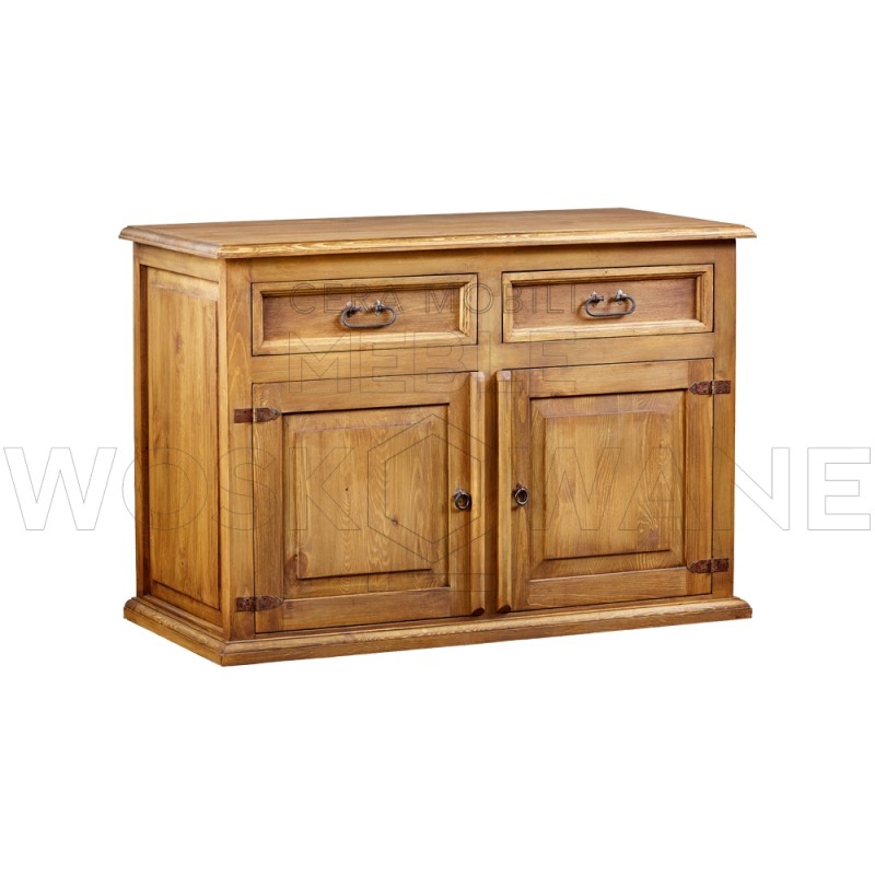 Meble drewniane woskowane Hacienda odznaczają się bardzo klasycznym i rustykalnym stylem. Delikatne zdobienia – filunki na frontach oraz wieńcowanie szuflad sprawiają, że są dekoracją samą w sobie…